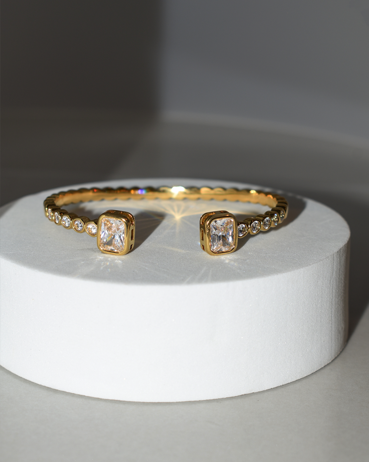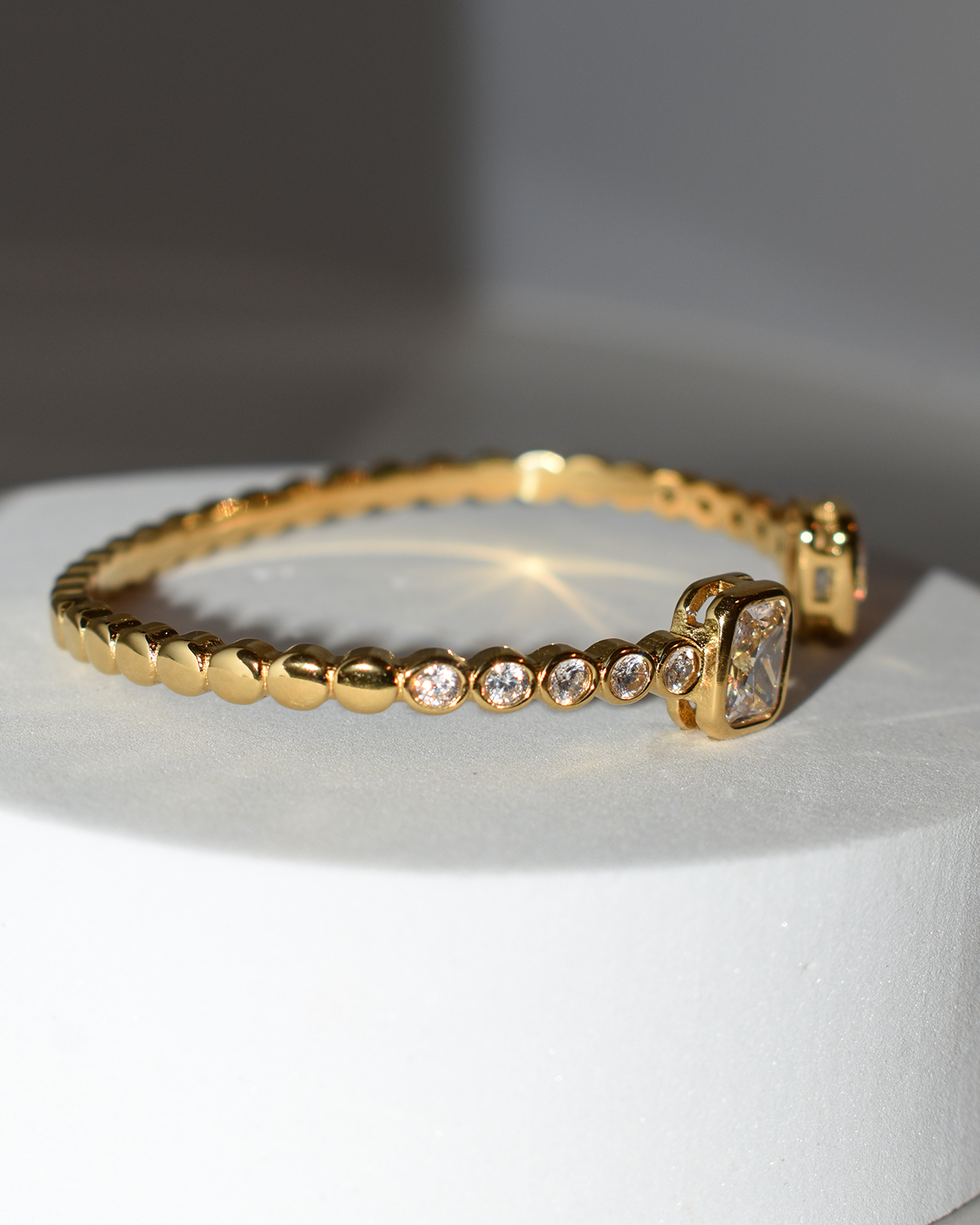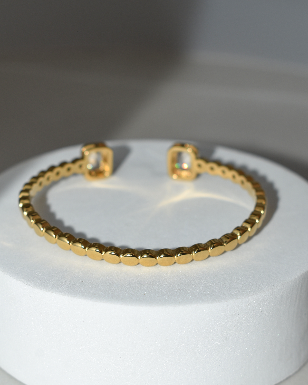 Made from waterproof, anti-tarnish stainless steel, this bezel-set beauty brings effortless shine to your everyday. Durable, dazzling, and built to last.